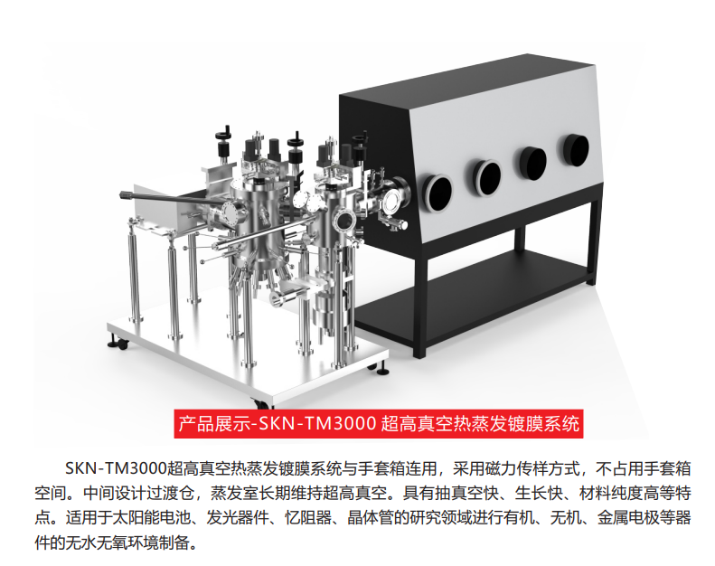 SKN-TM3000超高真空热蒸发镀膜系统与手套箱连用,采用磁力传样方式,不占用手套箱 空间。